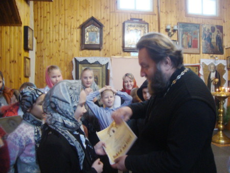 В конце экскурсии от. Димитрий поздравил четвероклассников с победой в VII Всероссийской олимпиаде по Основам православной культуры «Русь Святая, храни веру православную!» и вручил им дипломы. В олимпиаде по комплексу предметов, связанных с историей и культурой православия, в МАОУ СОШ №1 принимали участие не только школьники 4 классов, но учащиеся 5 – 9 классов. Все участники олимпиады получили сертификаты и дипломы, которые им были вручены в школе.