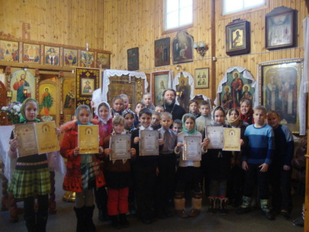 Восемь учеников 4 класса были награждены грамотами за успешное изучение тем «Православный храм», «Православные праздники» и «Храмы Великого Новгорода» на дистанционных курсах, где получили звание «Лучший знаток основ православной культуры». Настоятель церкви св. Николая Чудотворца от. Димитрий поблагодарил за участие в олимпиаде и благословил детей и пожелал помощи Божьей в учёбе.