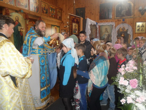 По завершению молебна каждый ребенок приложился к Кресту, был окроплен от. Димитрием святой водой.